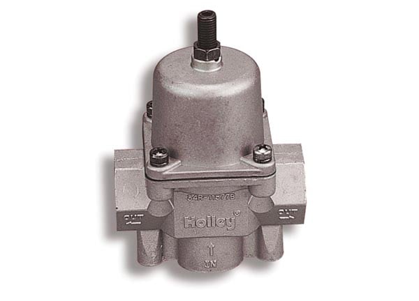 Holley fuel pressure regulators are designed to precisely control the fuel pressure from the fuel pump to the carburetor. Too much fuel pressure for a given needle and seat assembly can overload the needle and seat and may cause flooding or drivability problems. Each Holley fuel pressure regulator is fully adjustable so regulating the fuel pressure to your engines needs is a simple task. All Holley regulators are pre-set at the factory so there is no guesswork when first installing the regulator. The Holley 12-704 fuel pressure regulator features 1/2" NPT in/out ports.*** 1 1/2 NPT to AN -8 and 2 1/2 NPT to AN -6 For AN style fittings included