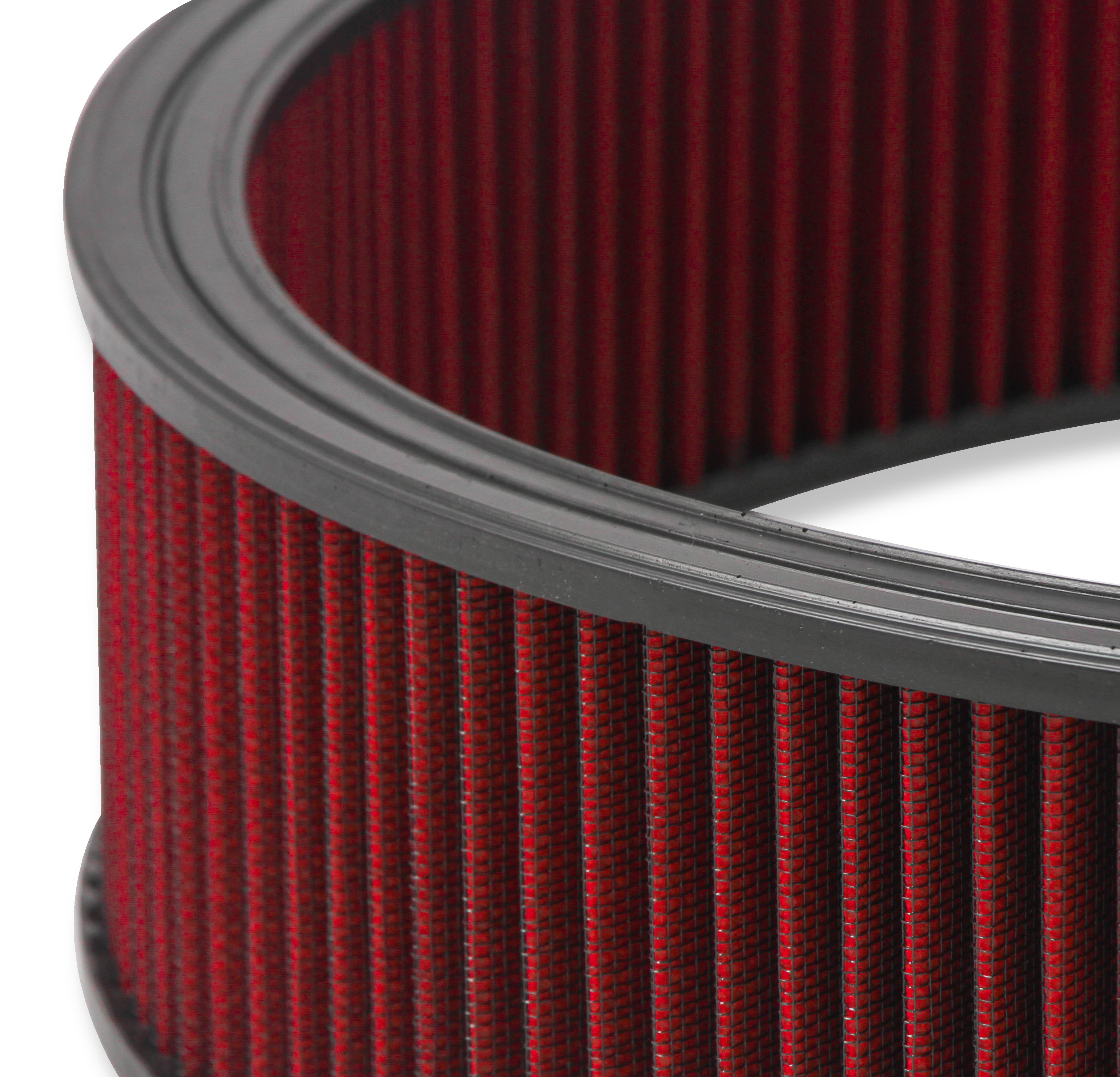 Holley is proud to offer another breath of fresh air with our new 16" drop-base 4150 air cleaner assemblies and filters. Available in 3", 4" or 6" filter heights and in chrome or EDP black. The assemblies are available with a red washable gauze element or a white pleated paper element to offer the look you have in mind. The tops are so large and smooth we decided to leave them plain for a nice stealth look, or to use as a canvas for creating your own look. They feature a 15/16" drop-base so hood clearance is gained above without creating clearance issues below.