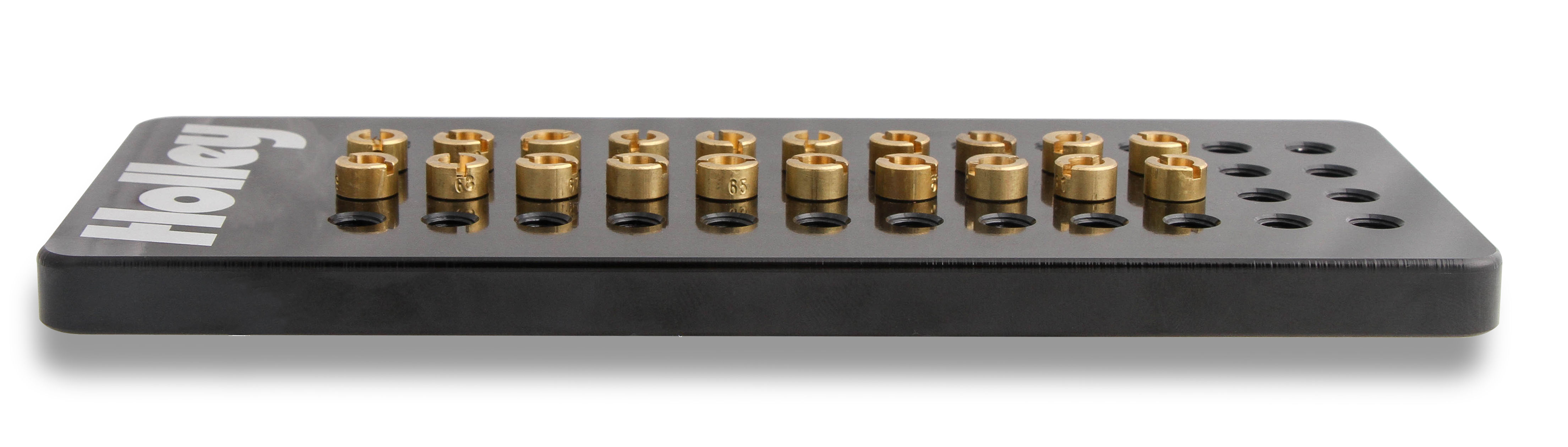 Jet Assortment Kit with billet plate. Comes with (2) each of every jet number from 60-69 and black anodized Holley billet plate.