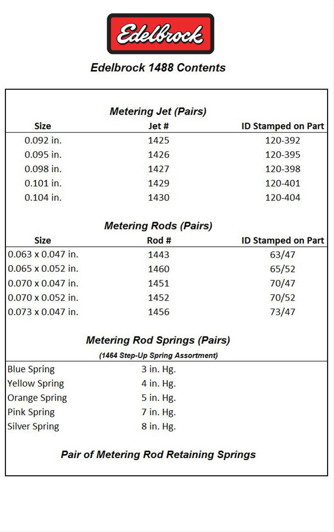 Performer Series Carb Calibration Kits include an assortment of metering rods and jets, one pair of metering rod retaining springs and a complete assortment of step-up springs.