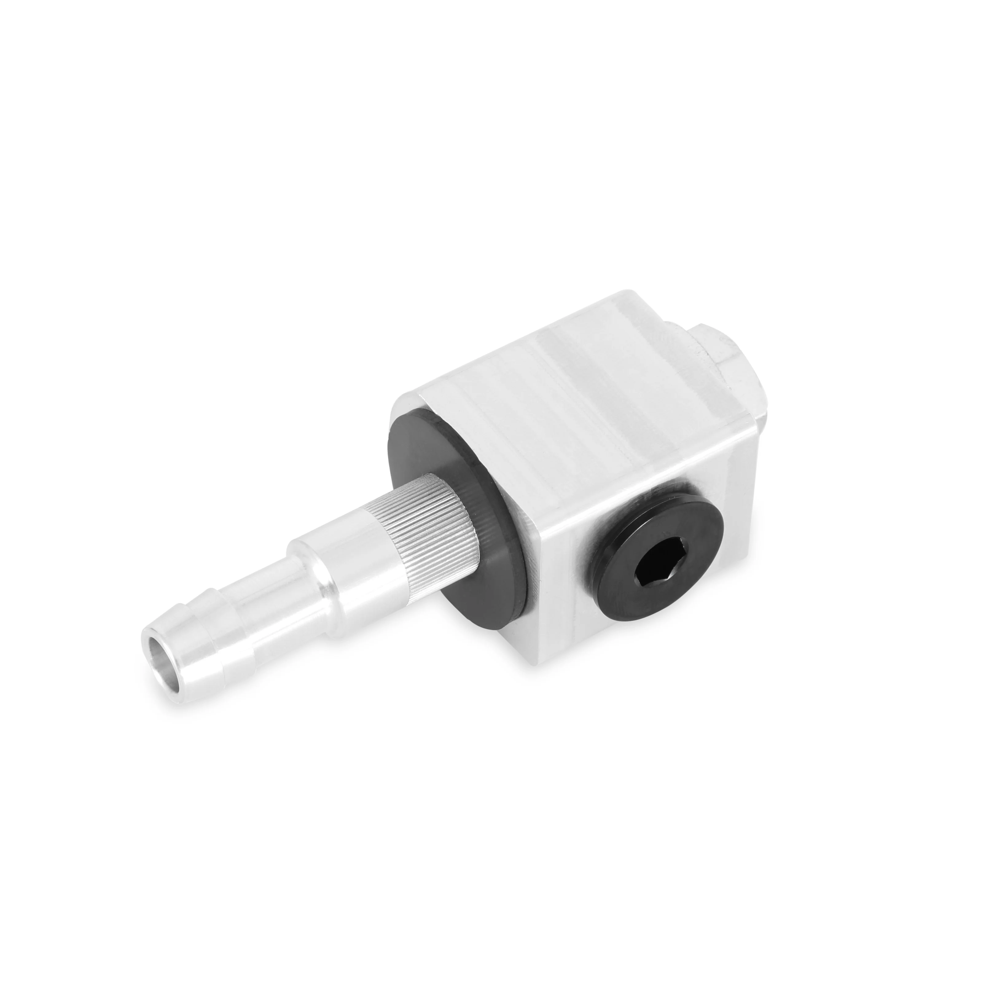 Introducing the Earl's Universal Weld-less Fuel Return Fitting! This new design eliminates the need to access the inside of the tank or cell! The fitting installs just like a rivet nut. Just drill a hole, install return tube, insert the fitting with the rubber washer, and tighten the bolt! The fitting collapses or "mushrooms" from the underside which secures the fitting to the tank creating a perfect seal to the tank mating surfaces! The fitting is machined out of 6061 Billet Aluminum and has been tested with tank material thicknesses up to 1/8" (0.125 inches). Each kit includes an oversized Viton Fluoroelastomer Rubber Sealing Washer, Hex Head Screw with Steel Washer, -6AN Low Profile Port Plug with Viton O-Ring, and two tube options (Fixed and Flexible Nylon).