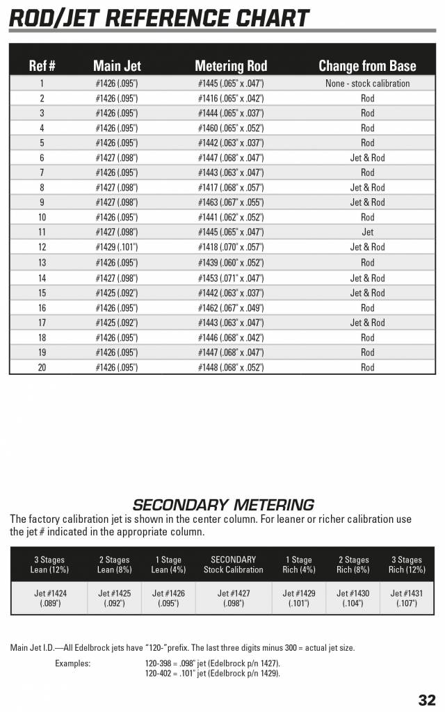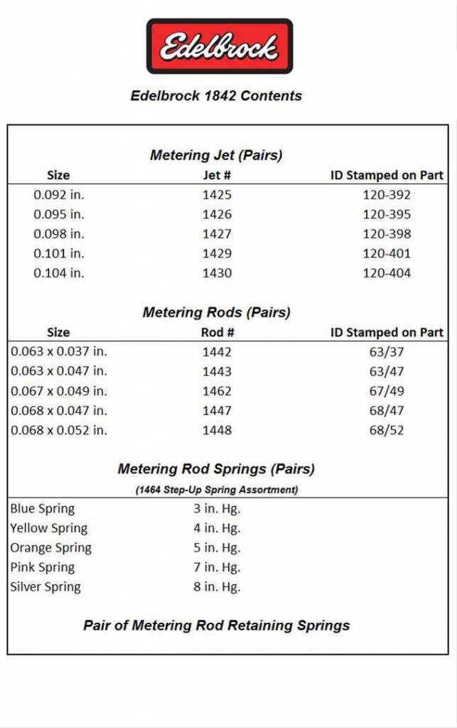 Calibration kit for Edelbrock 1825, 1826