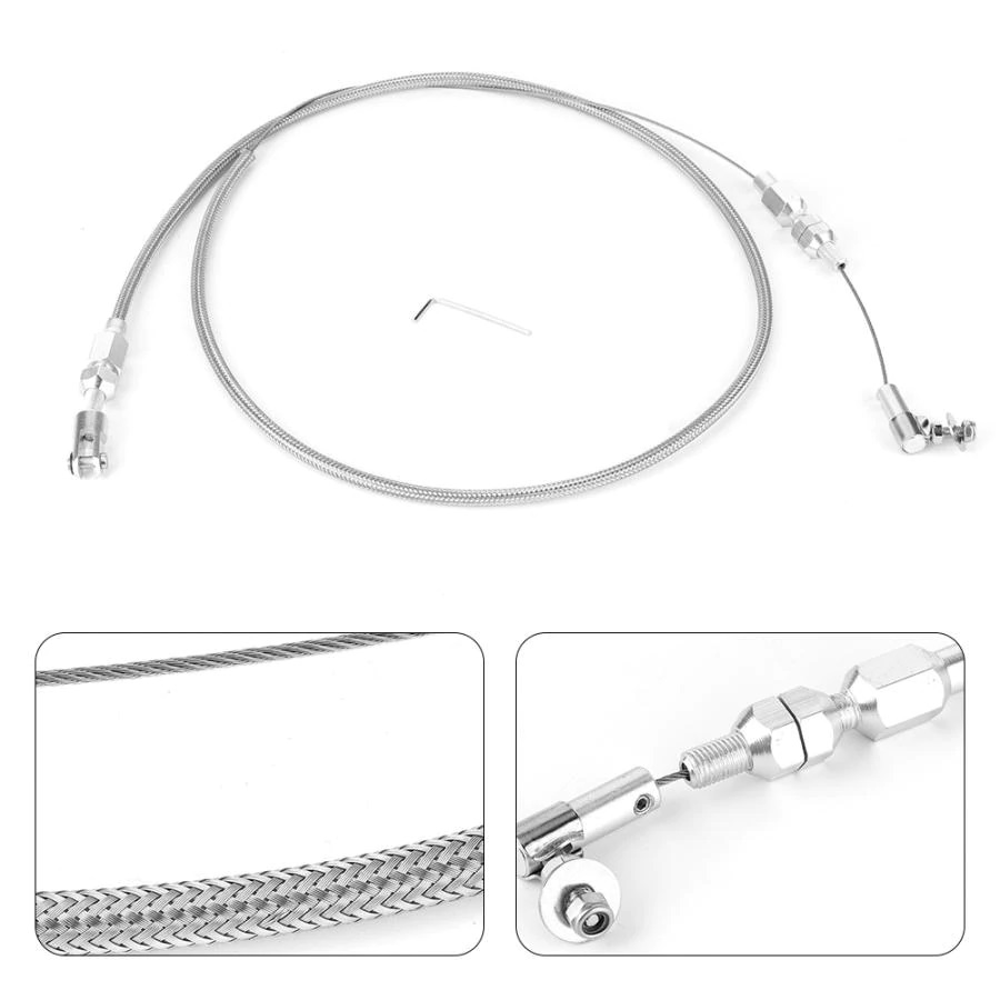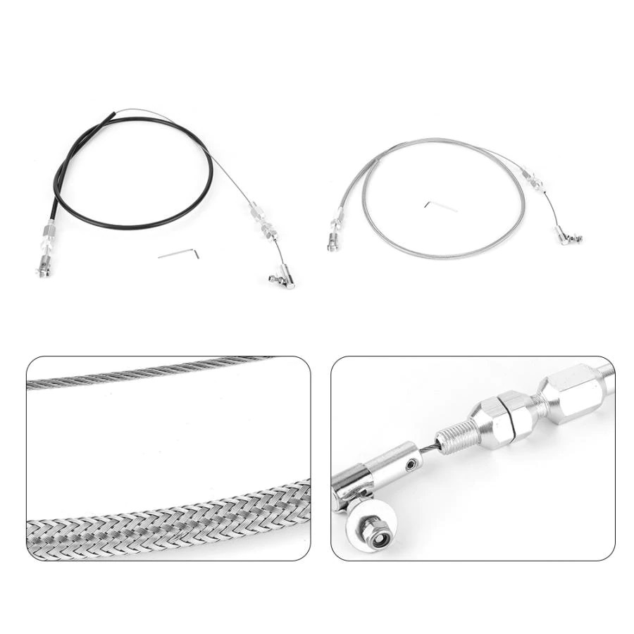 These universal throttle cable kits contain all of the necessary hardware for a complete installation onto your carburetor. They feature a 59 in. long cable, wrapped with a 37 in. stainless steel braided or rubber sleeve, that can be cut to length to fit your specific application.