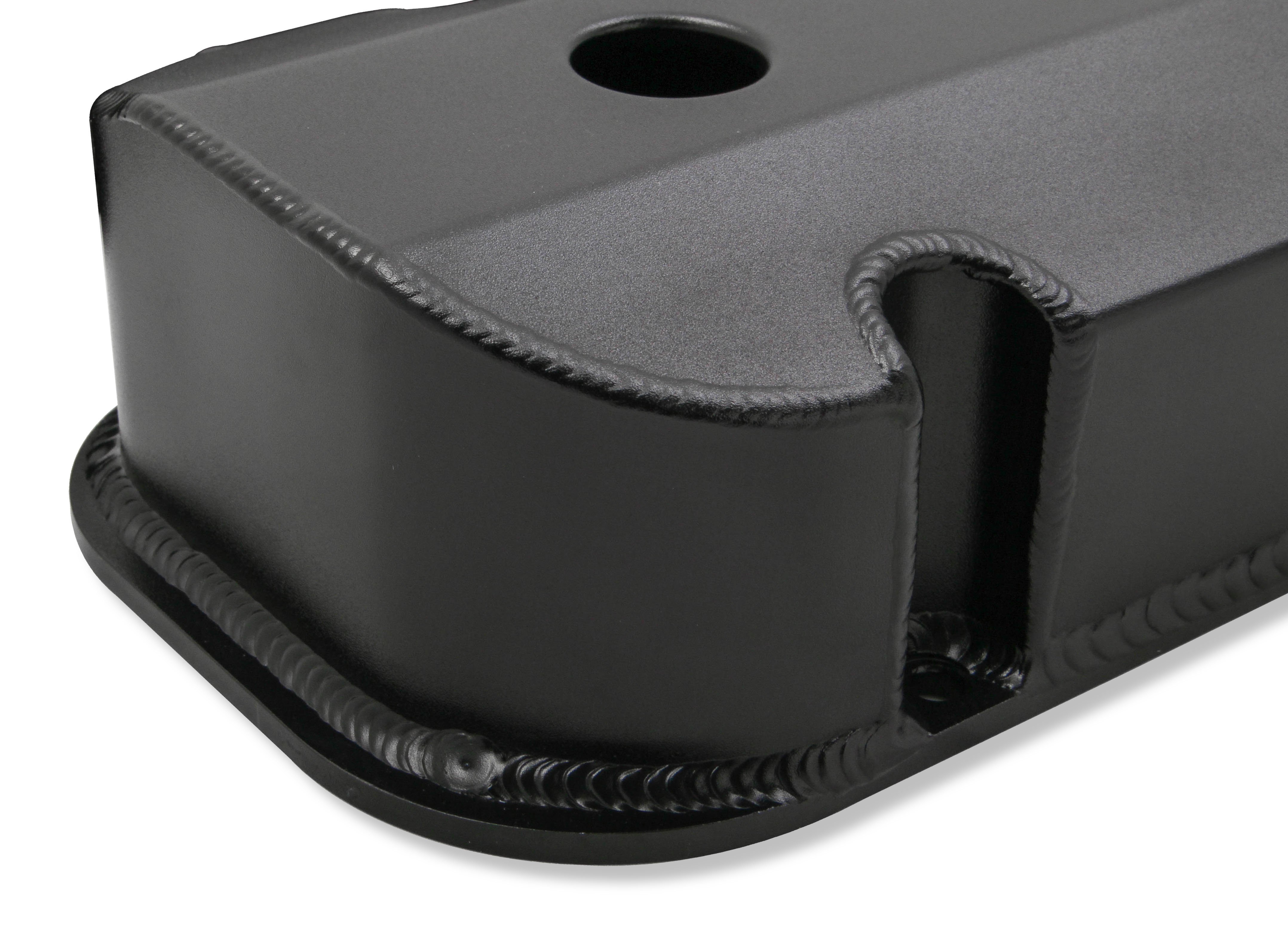 Holley is pleased to release its latest fully licensed product--GM Track Series Fabricated Aluminum Valve Covers. The GM Track Series family of valve covers gives you an excellent way to add a high-end fabricated look combined with a lightweight and tough valve cover for your favorite Chevy engine. These valve covers are constructed of 6061 T5 sheet aluminum, feature a laser etched "Chevrolet" and Bow Tie logo, and precision TIG welded for a proper fit. They are available in silver anodized or black coated finishes along with various heights to clear most popular rocker arm combinations. All of our valve covers include mounting hardware for quick and simple installation.