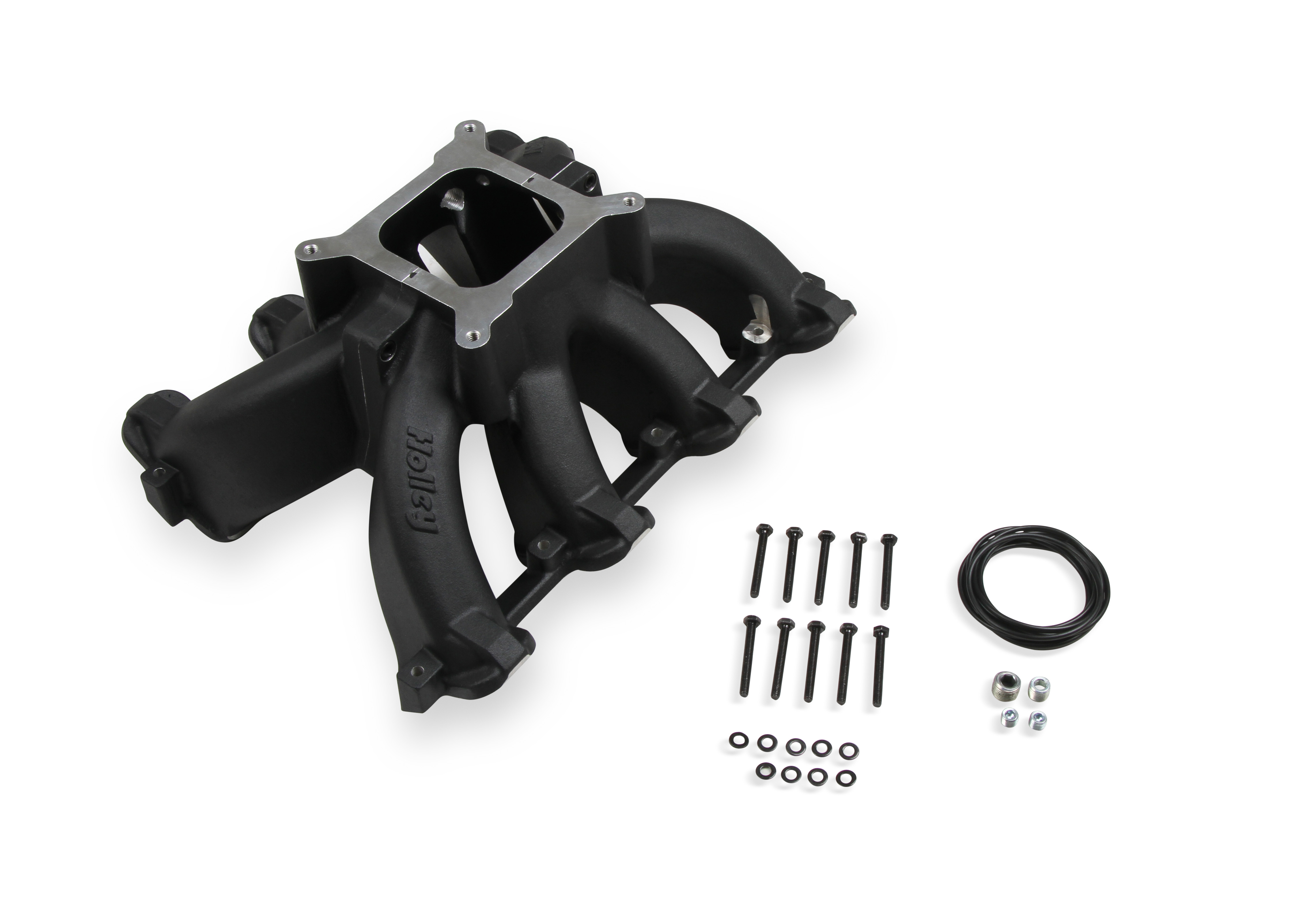 The new Holley Single-Plane Race intake manifold were designed with performance in mind. They feature a race bred, two piece split feature that was previously only found on the most expensive race intakes. The manifold will fit GM LS Gen III engines with cathedral port heads and are intended for 4150 style square bore flanged carburetors or throttle body EFI.The LS Race single-plane intake manifold was designed for hi-performance/racing engine applications, 5.3 to 6.2+ liter displacement, and maximum engine speeds of 6000-7000 rpm, depending on the engine combination. This single-plane design provides optimal performance across the RPM spectrum while providing maximum performance up to 7000 rpm.The Holley LS Race manifold incorporates a split feature, which allows disassembly of the intake for direct access to internal plenum and port surfaces, making custom porting and matching a snap. With shoulder bolt locators and O-ring seal, reassembly is simple and precise.Technical Data:? A-B Height - 7.32" (0° carb flange angle)? Port Size- 3.28" Height x 1.10" Wide? Carburetor Flange - Standard 4150 for up to 1-3/4" diameter throttle bores? As-Cast Runner Cross-Sectional Area - 3.5 in² at the runner entry tapered to 2.9 in² at the flange exit