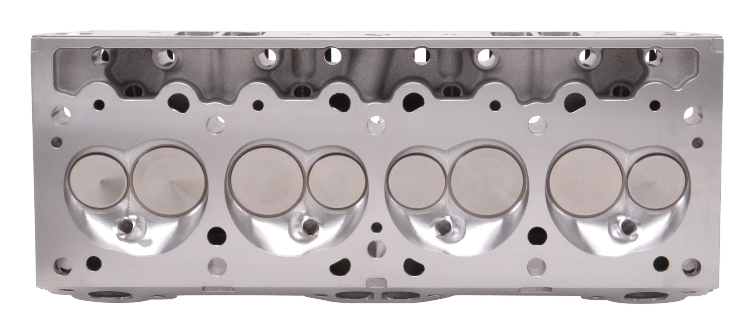 The Edelbrock #61579 Performer Pontiac Cylinder Head utilize a D-Port exhaust port configuration for use with standard D-port exhaust systems. They are designed for 1962-79 389, 400, 421, 428 and 455 c.i.d. V8 Pontiac engines with a 4.060" or larger bore. They feature optimized oil return passages for increased oil flow. The spark plug has been relocated closer to the exhaust valve for improved performance. This head is cast with extra thick port walls and a compact port size, making them ideal for CNC and hand porting. Complete cylinder head includes guide plates, rocker studs and high quality valvetrain for direct bolt-on application. Heat crossover is machined for 50-state emissions legal performance.