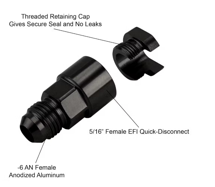 Russell's innovative threaded end cap was engineered to insure positive retention in the hi-performance application where vibration and higher fuel pressures are common. Our unique dual O-ring system guarantees a leak proof seal.
