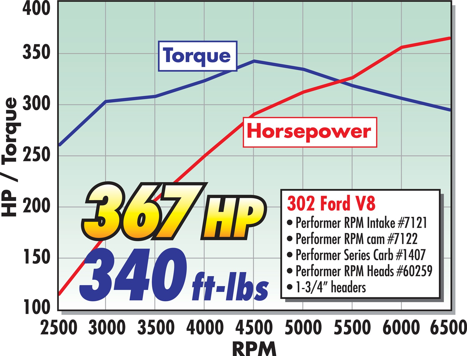 - Matched to Edelbrock Performer RPM intakes