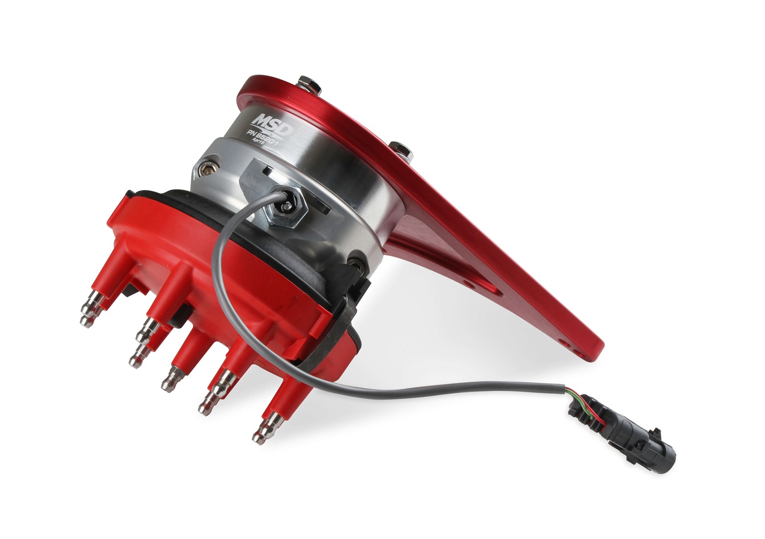 MSD's Pro-Billet Front Drive distributor with adjustable Hall-Effect Sync Pickup is the solution for race engines that don't have room for a standard distributor due to firewall clearance or intake combinations and need a cam sync signal for EFI systems. The MSD Front Drive distributor is belt-driven from a pulley installed on the camshaft. For increased strength and durability a 9mm belt is used which is wider than any other drive assembly. The distributor head is CNC-machined from a billet of aluminum and is secured to a strong precision bracket. An adjustable Hall-Effect sensor provides a clean cam sync signal for EFI systems. The sensor has a built in LED used for quick, easy setup and adjustments. This system is an extremely accurate way to distribute the spark energy from your MSD Ignition!