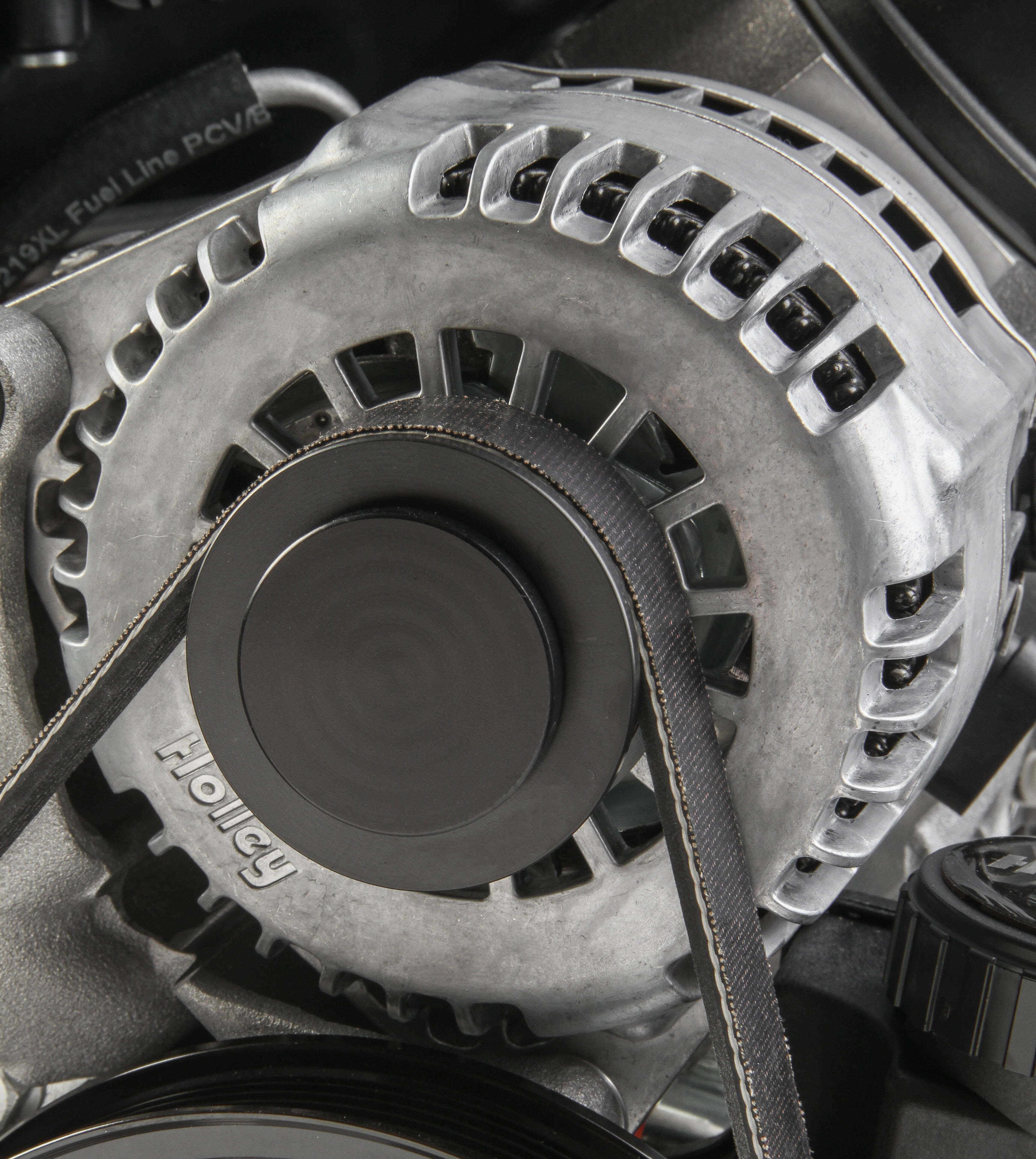 Alternator Pulley Cover Black-Works with Holley alternator part numbers 97-302, 97-303, and 97-304 only.